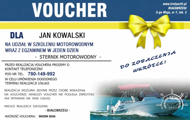 Przed realizacją konieczna jest informacja telefoniczna pod numerem 780-149-992 o terminie chęci zrealizowania vouchera.